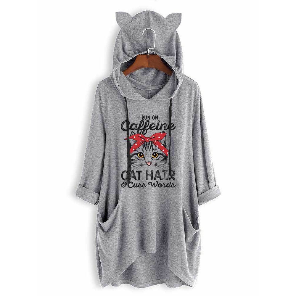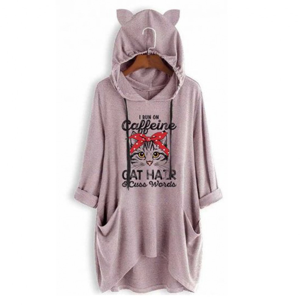Mid-Sleeve Hooded Loose T-Shirt Large Size Ladies Printed Irregular Top