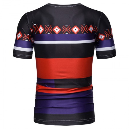 New Style Flat Men's Fashion Large Size Striped Short Sleeve T-Shirt