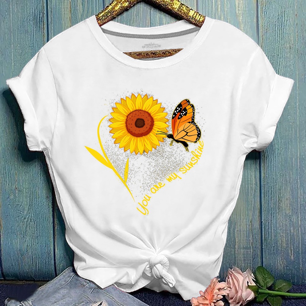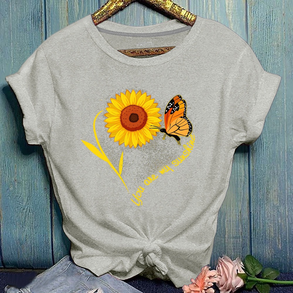 Summer New Hot Sun Flower Print Butterfly Plus Size Short-Sleeved T-Shirt