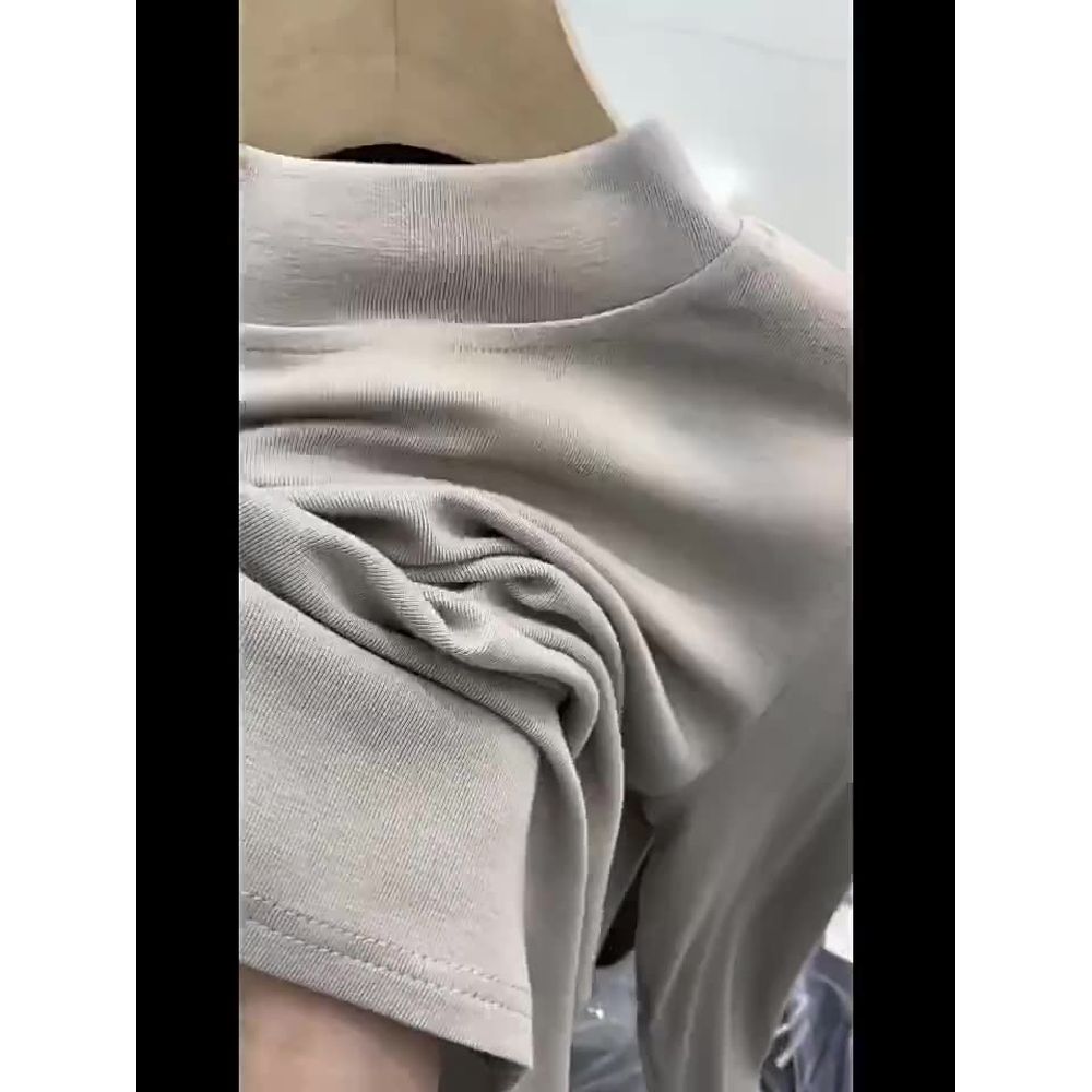 Retro Straight Shoulder Short Sleeve T-Shirt Women's Summer Slim Top
