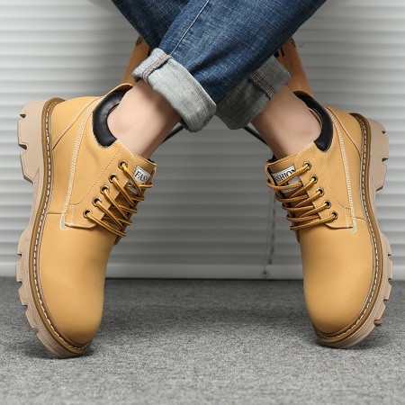 Men's Shoes Fashion Leather Casual Shoes Low-Cut British Martin Boots