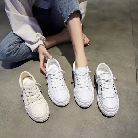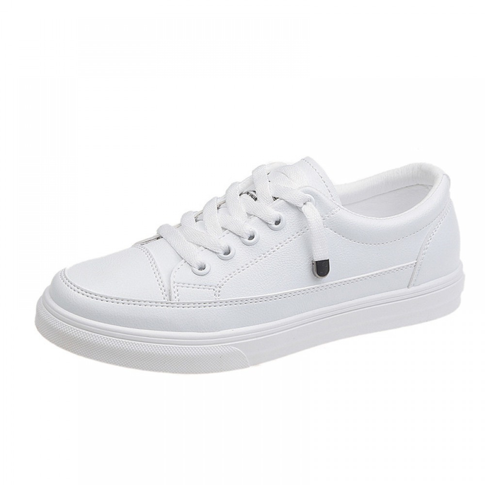 White Shoes Female New Breathable Student Board Shoes Female Flat-Bottom Lace-Up Casual Shoes