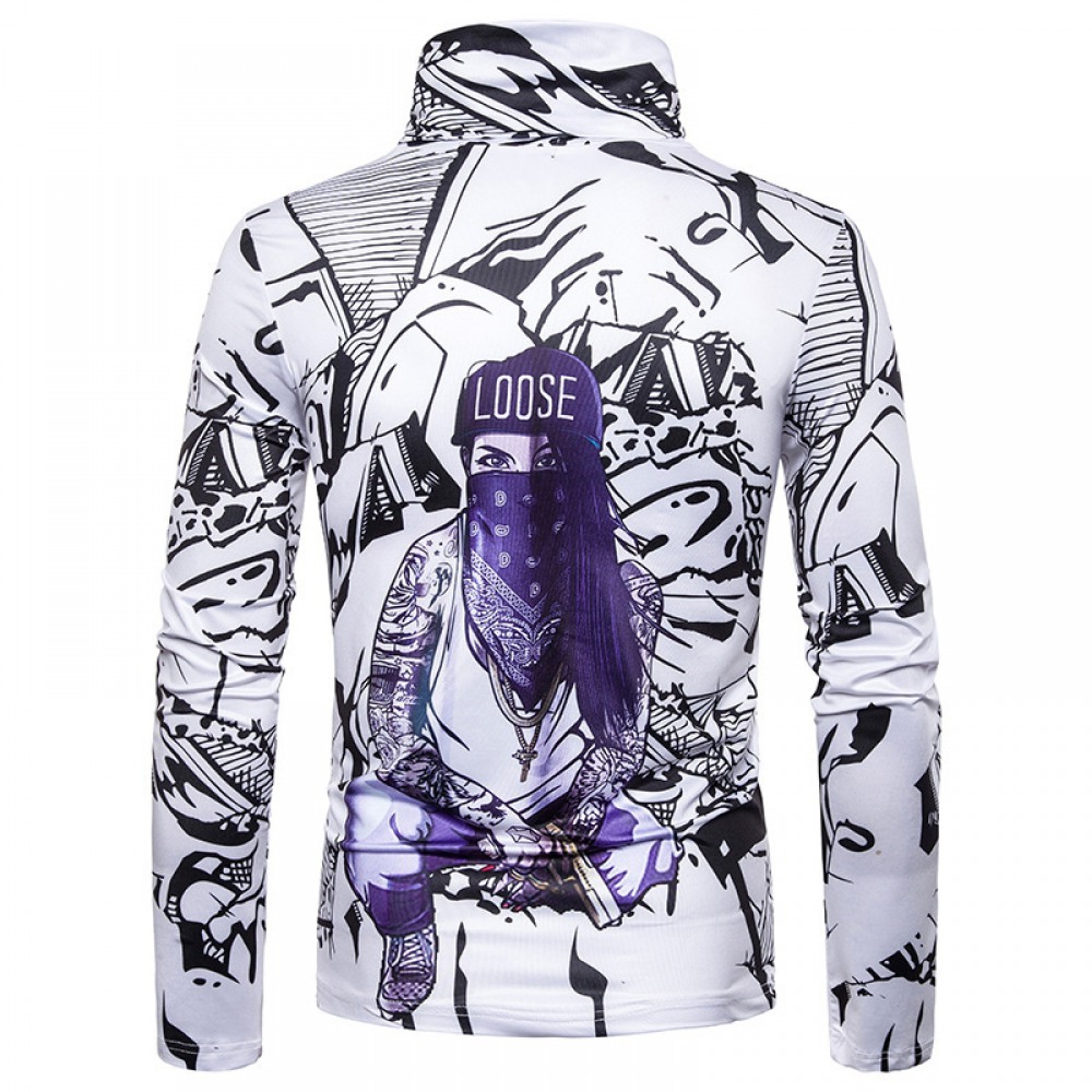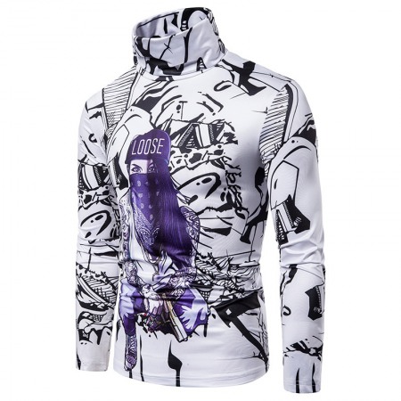 Men's Large Size 3D Character Print High Neck Long Sleeve T-Shirt Bottoming Shirt