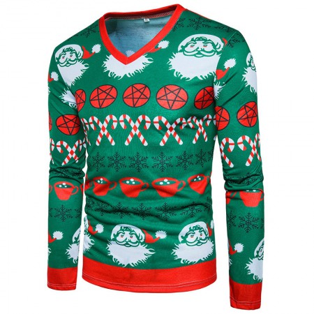 3D Personality Printing Fashion Men's Christmas Santa Pattern Long-Sleeved T-Shirt