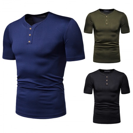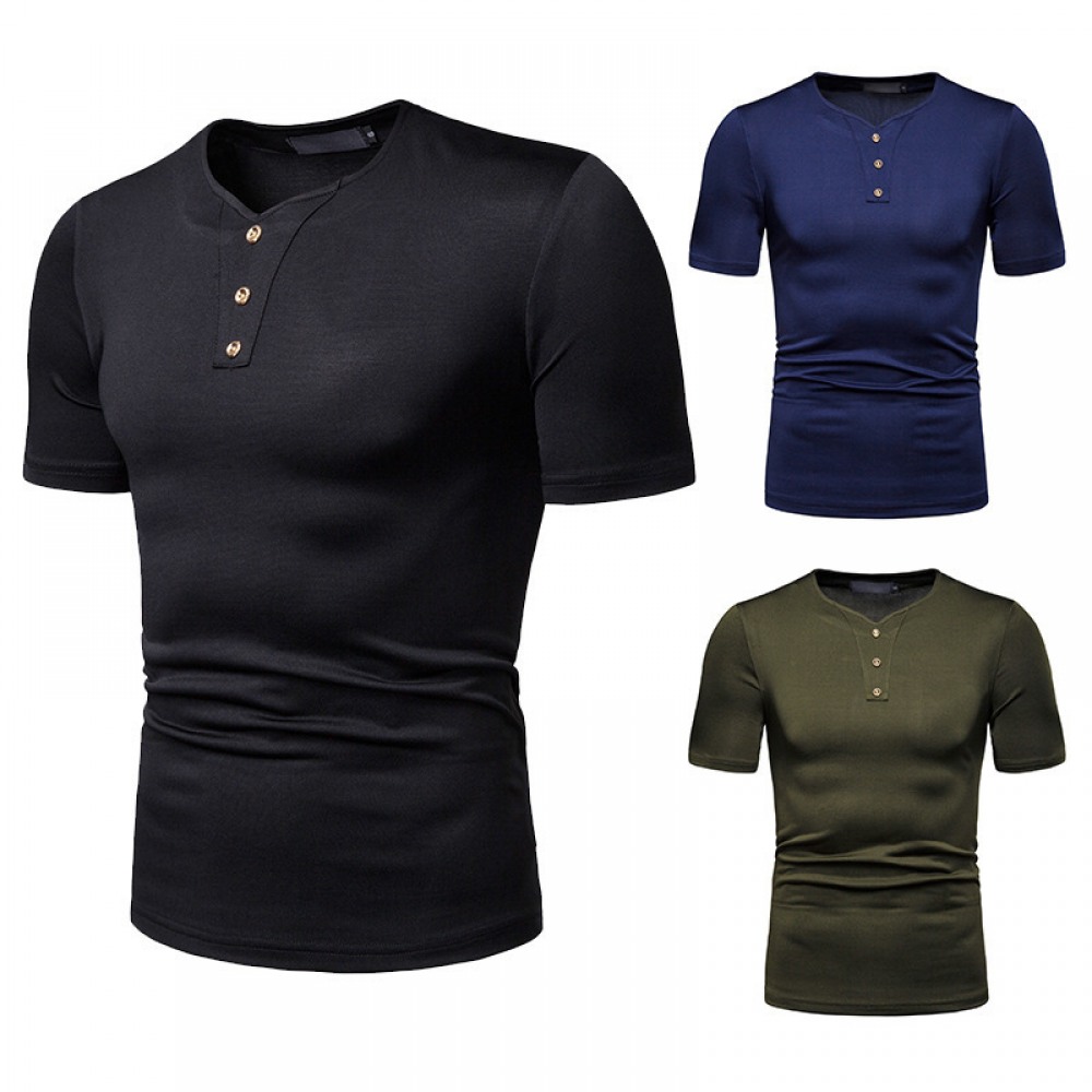 New Year Lapel Short Sleeve Men's Casual T-Shirt White Bottoming T-Shirt