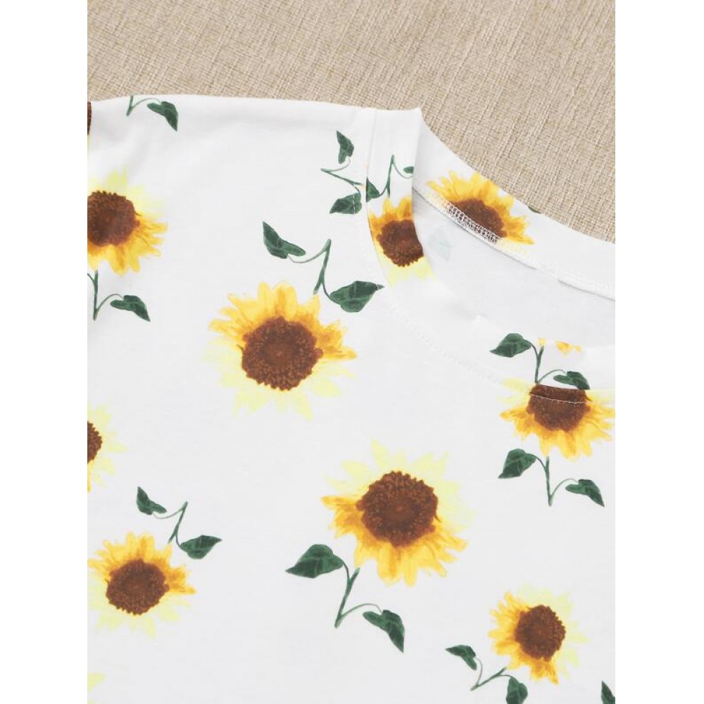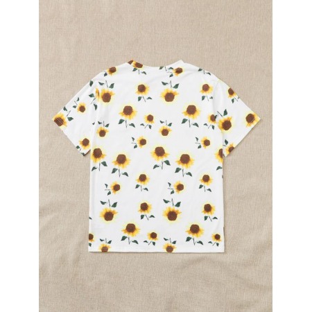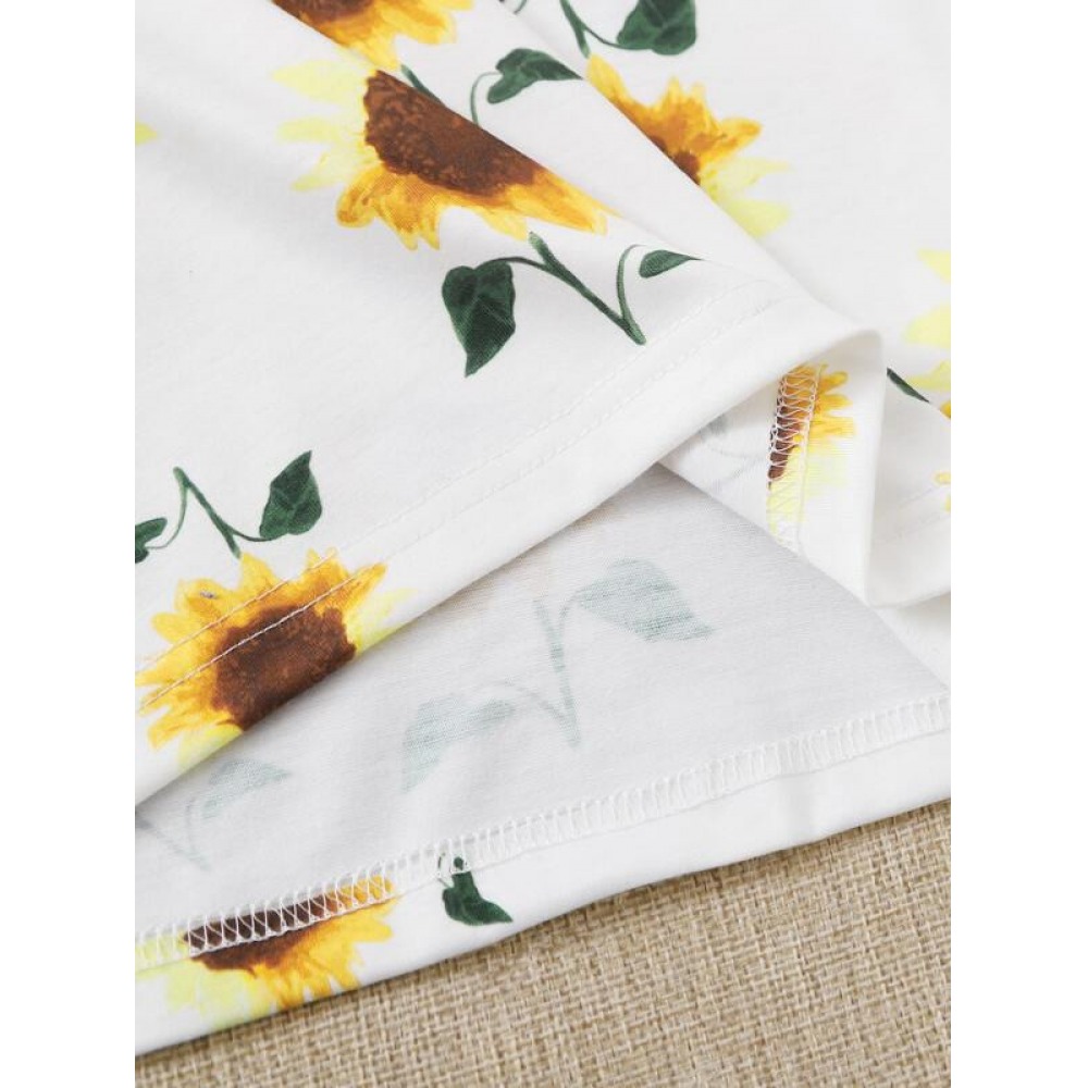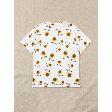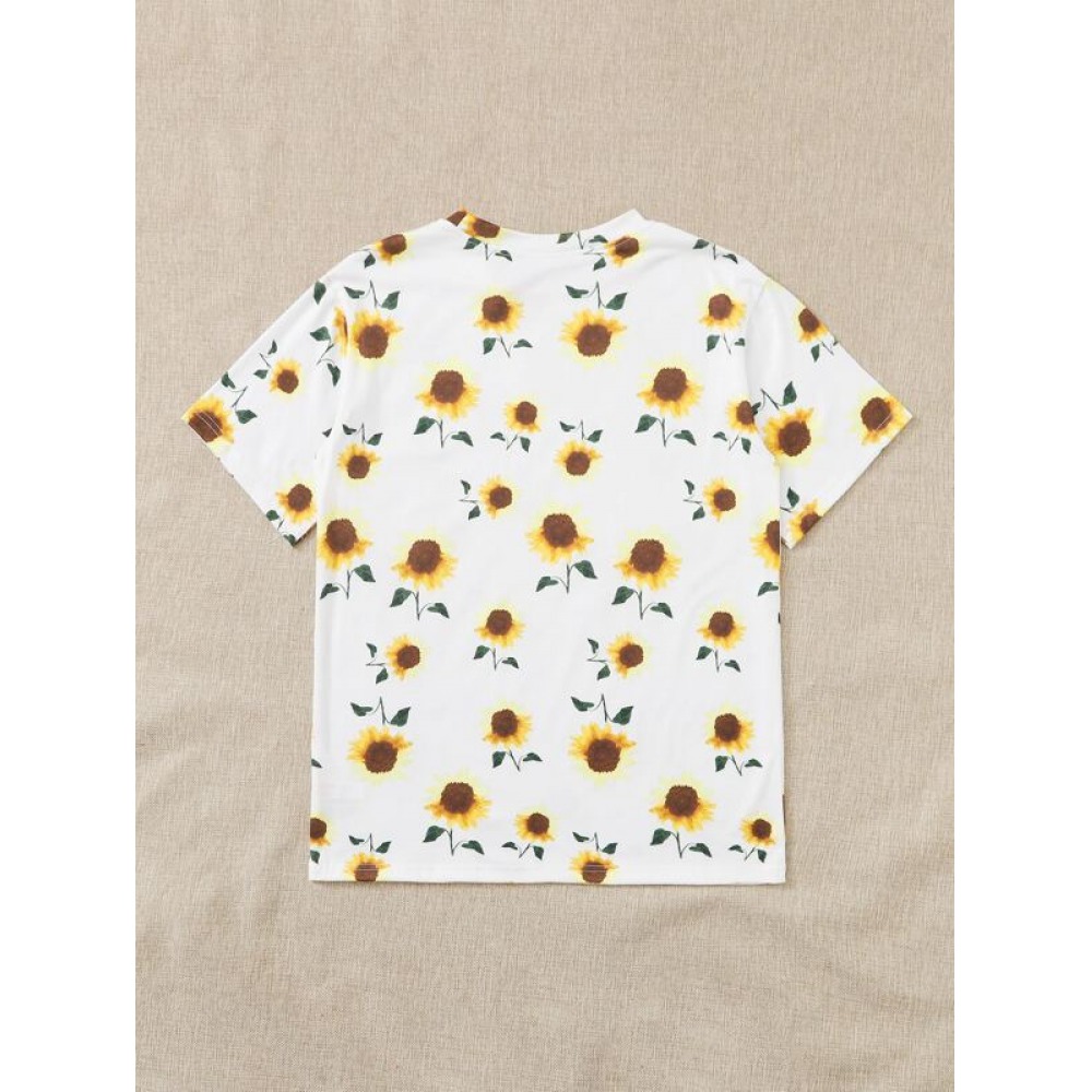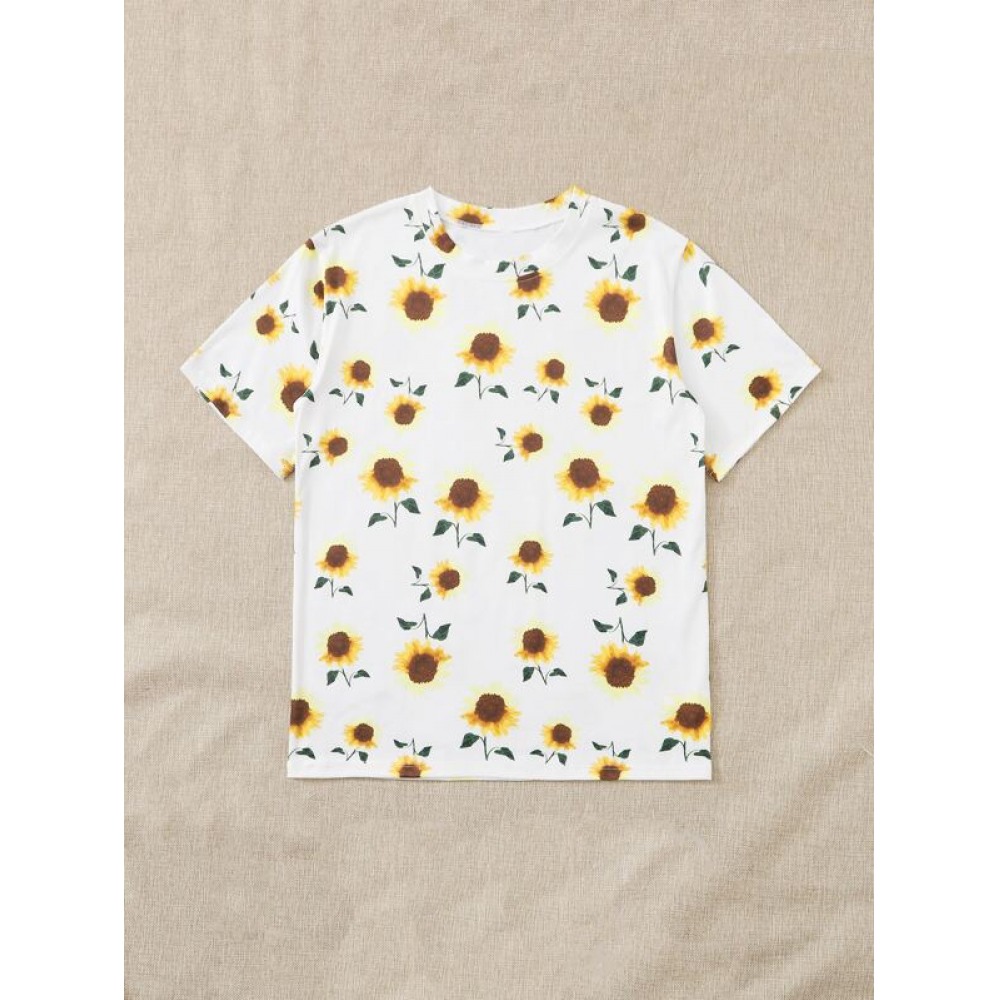 Summer New Hot Sun Flower Print Butterfly Plus Size Short-Sleeved T-Shirt